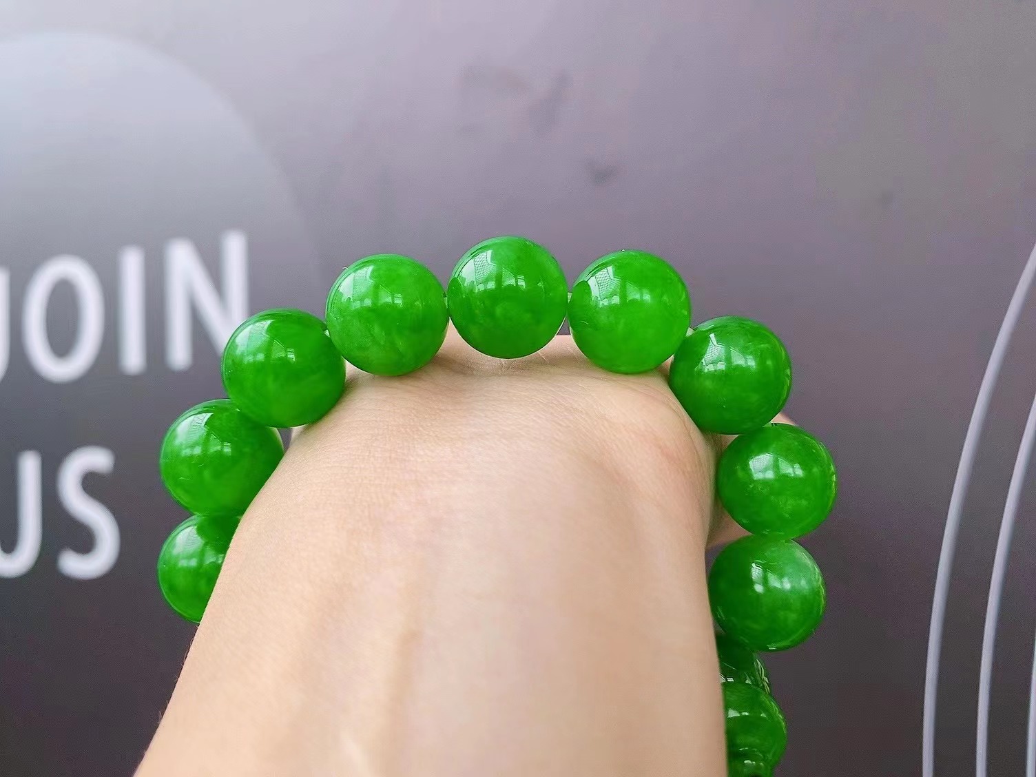 珠子也是一種常見的素面翡翠,且限于體積,很少有人會嘗試在珠子上雕刻。因為車珠子是極其翡材料的,比如一個鐲心料,如果是比較大顆的珠子,可能也只能出四五個珠子。一塊幾公斤的大料,也出不來幾條手串來。