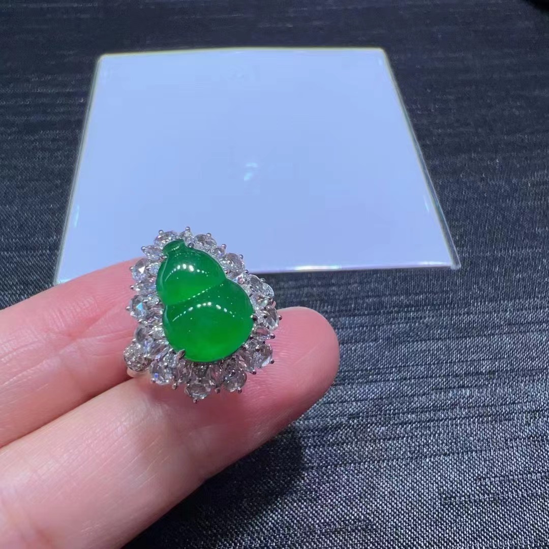 【描述】滿綠翡翠葫蘆戒指,圓潤(rùn)飽滿 色澤鮮艷
