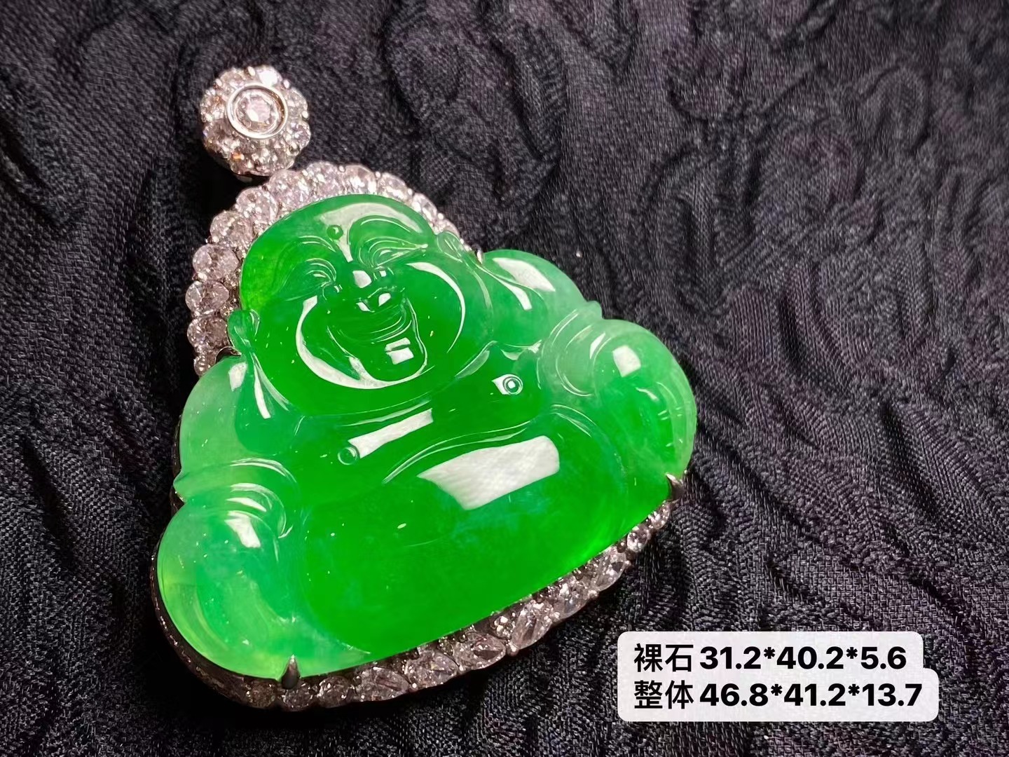 【描述】冰種滿綠翡翠佛公,色澤鮮艷,圓潤(rùn)飽滿